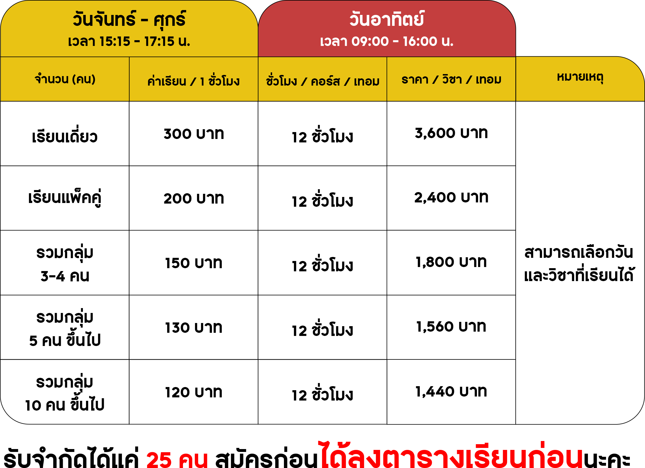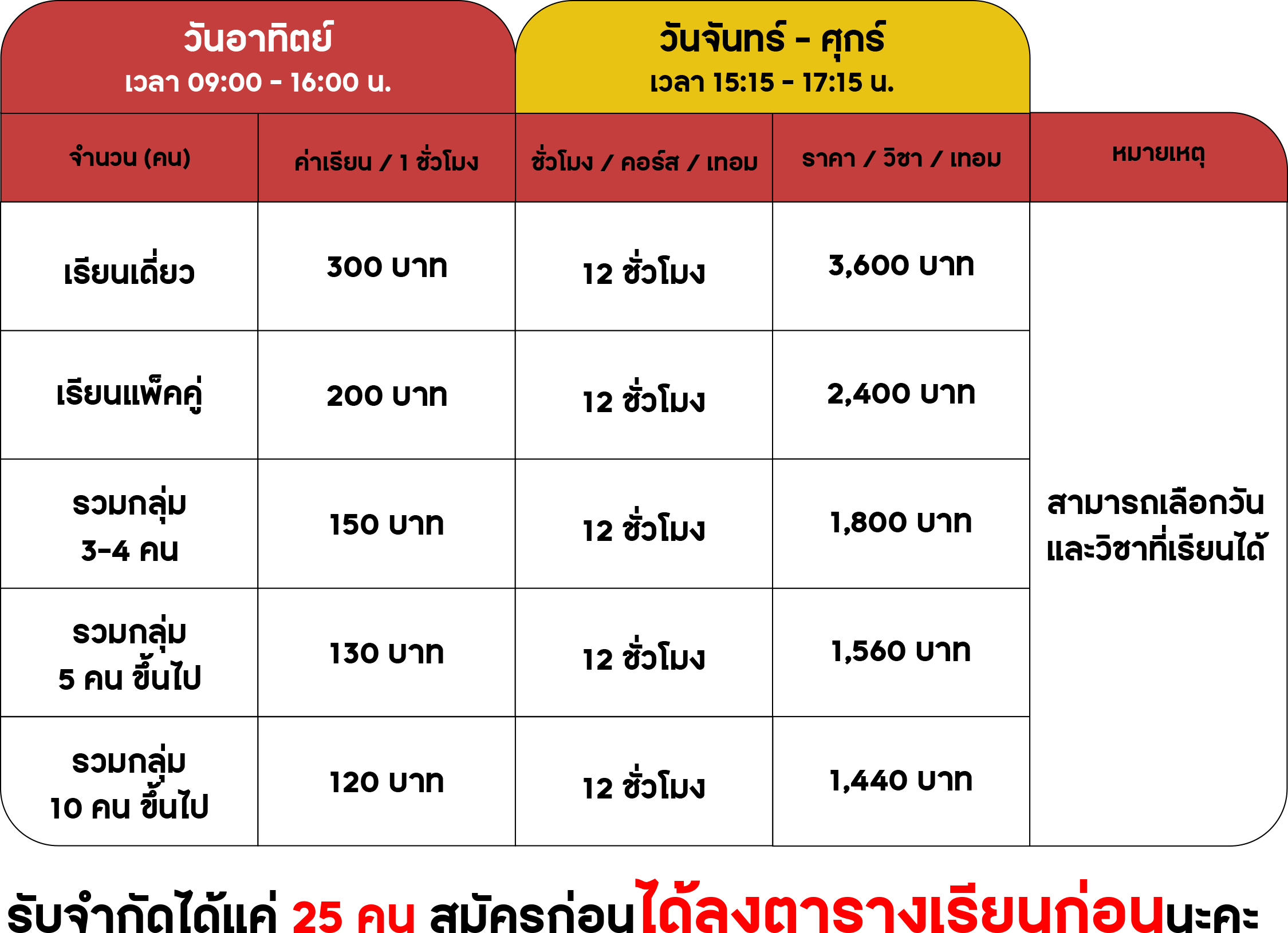 ราคา 20,000 บาท (แบ่งจ่าย 6 งวด) ชั่วโมงละ 120 บาท